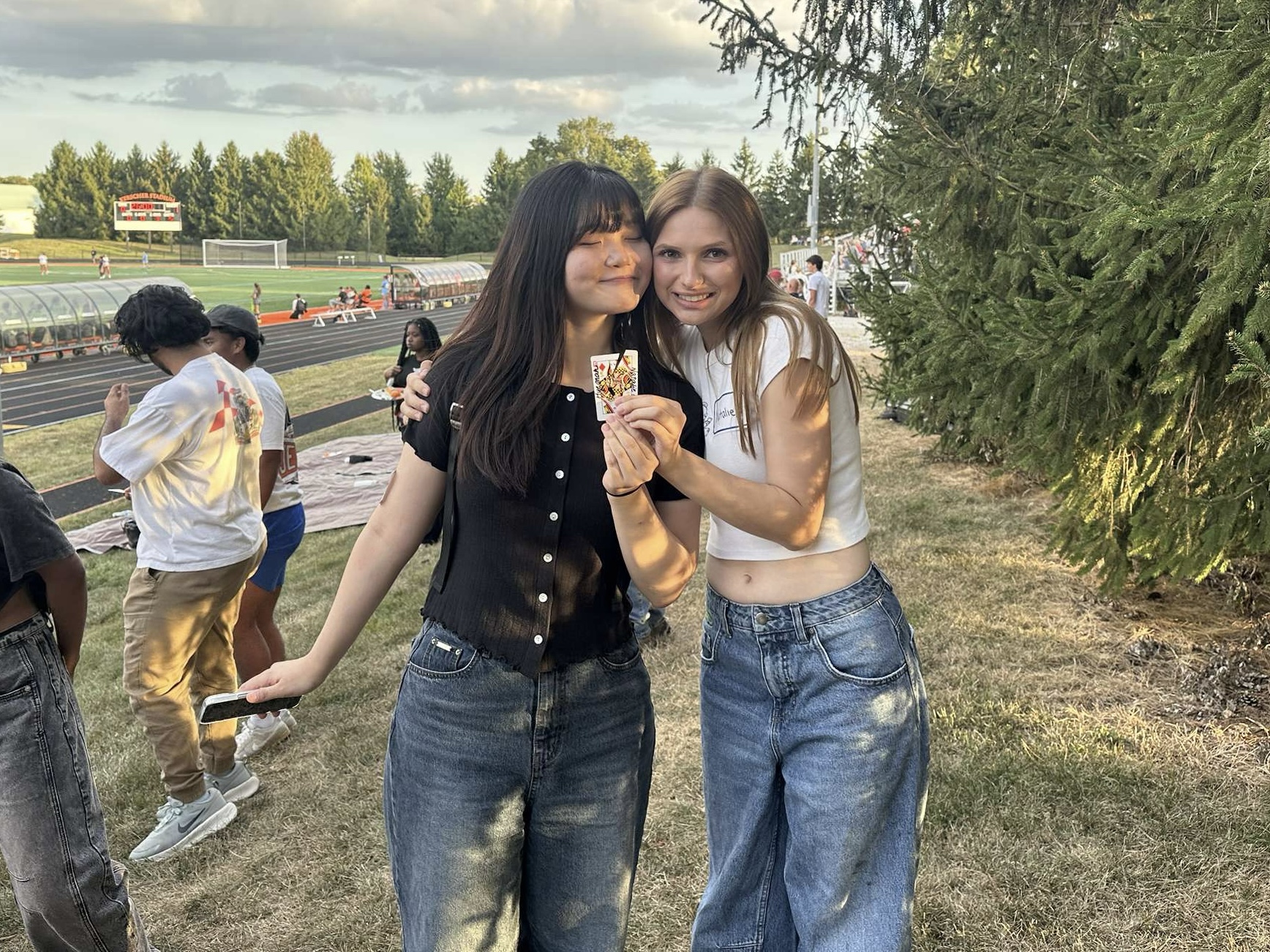 Food was set out on a long buffet table, encouraging natural interaction as students lined up and waited for their turn to choose their meal. Furthermore, two large tarps were laid out in front of the soccer field, offering a comfortable social setting. Students could sit on these tarps, eat, and watch the soccer game. Being at the soccer game alleviated any pressure to focus only on conversation, making it easier for students to relax and interact.